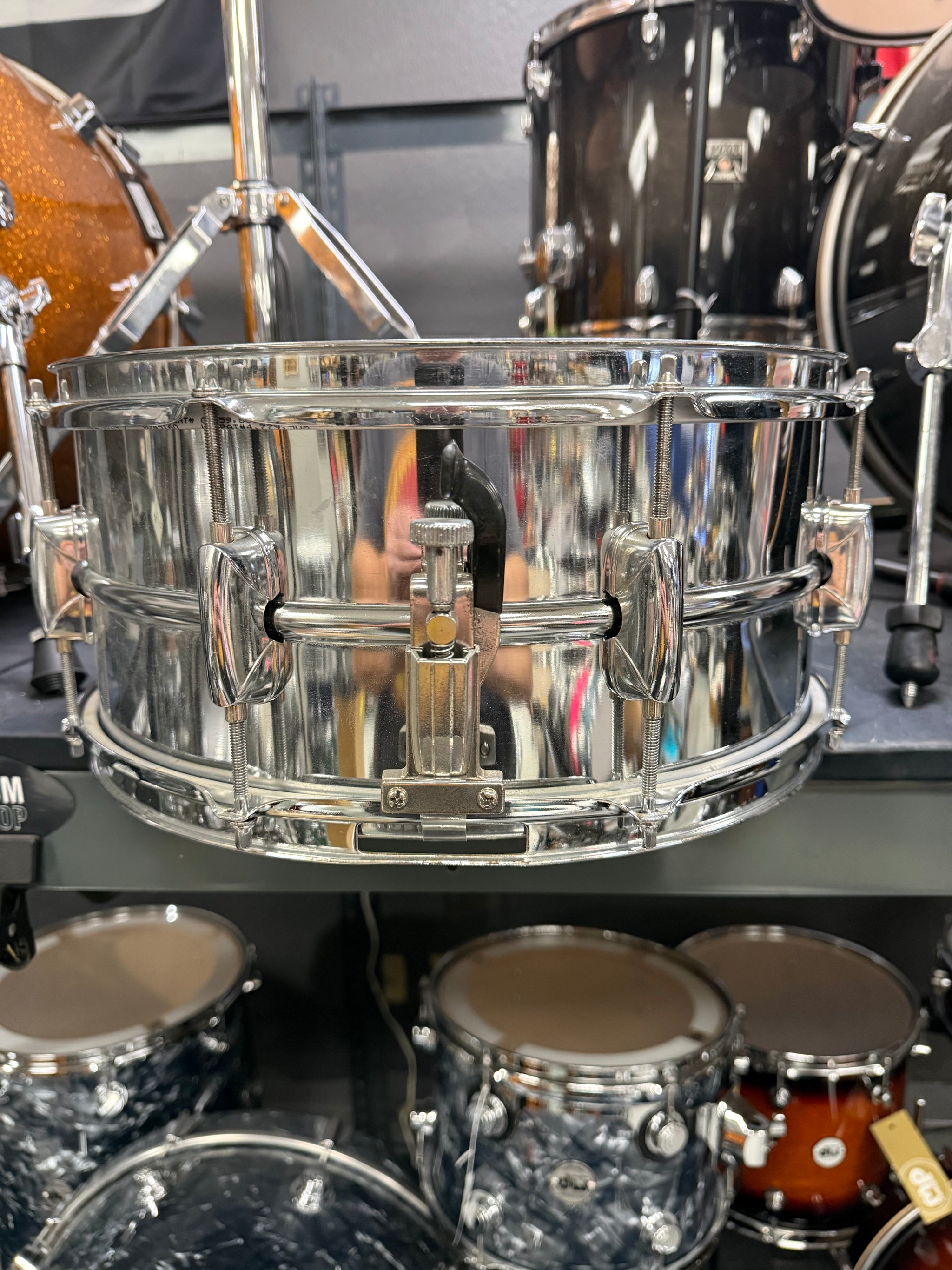 $79 Sound Percussion 14x6.5” steel snare. Very nice sounding snare with classic looks. www.drumflip.com