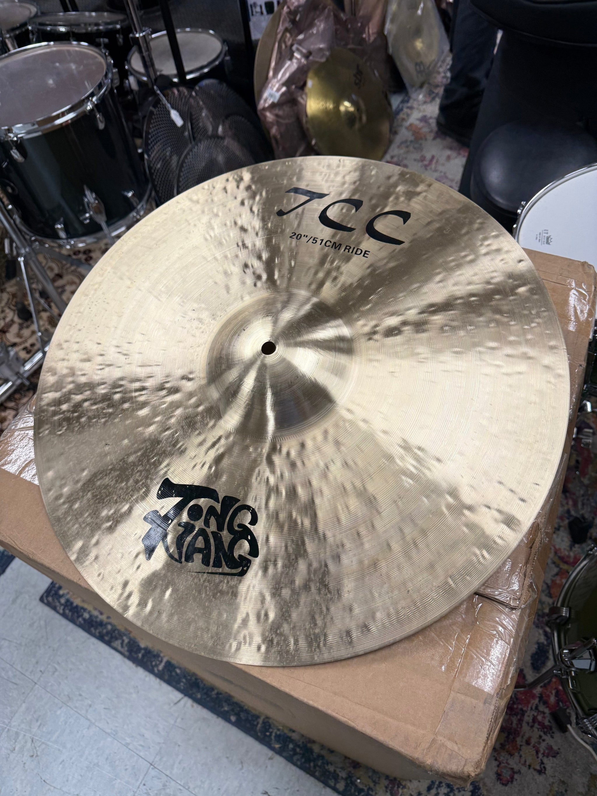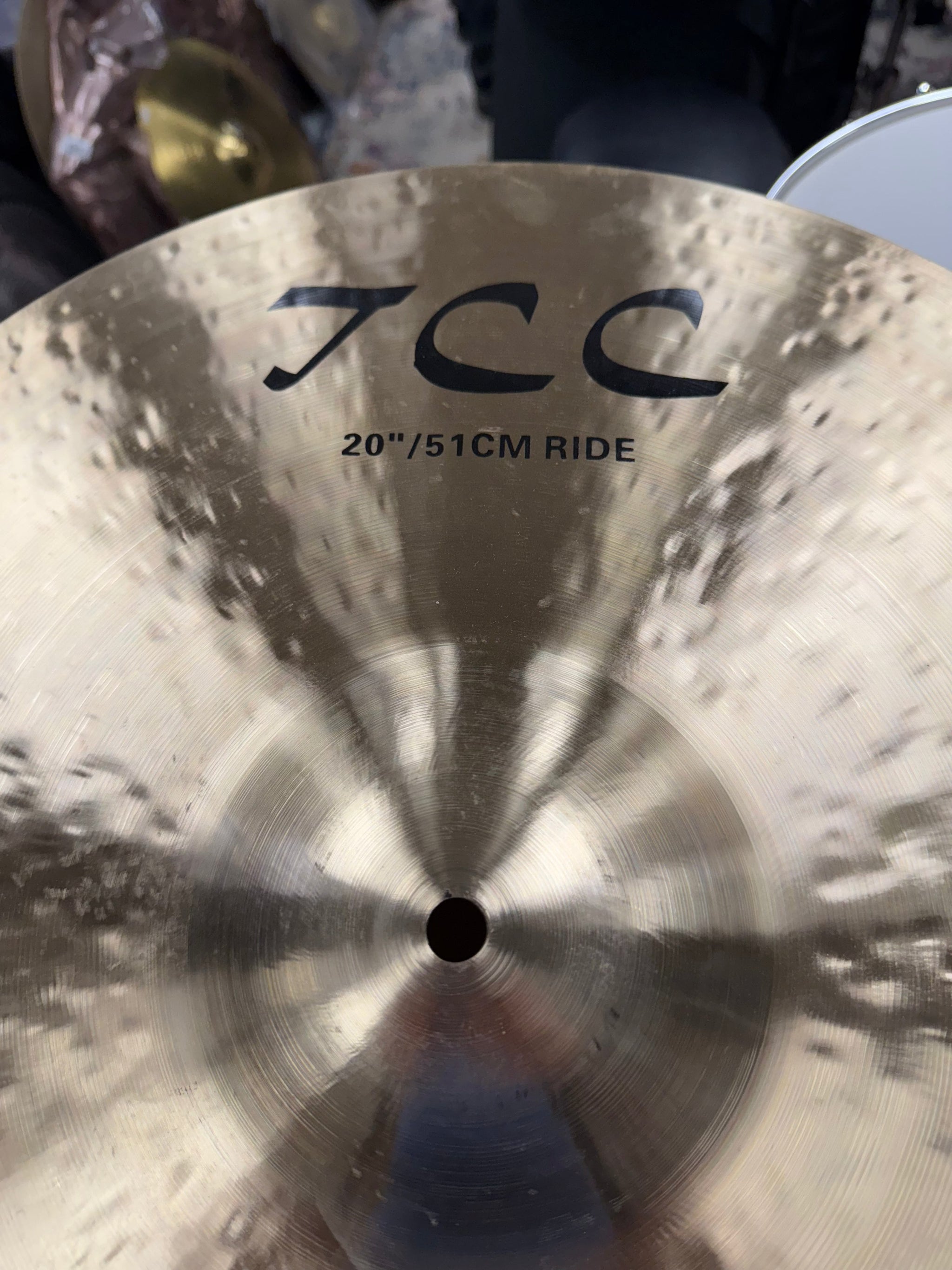 $145 TCC 20” ride cymbal. Barely used. Loud dark and shimmery crash. Large complex bell and dark overtones. Hand hammered.