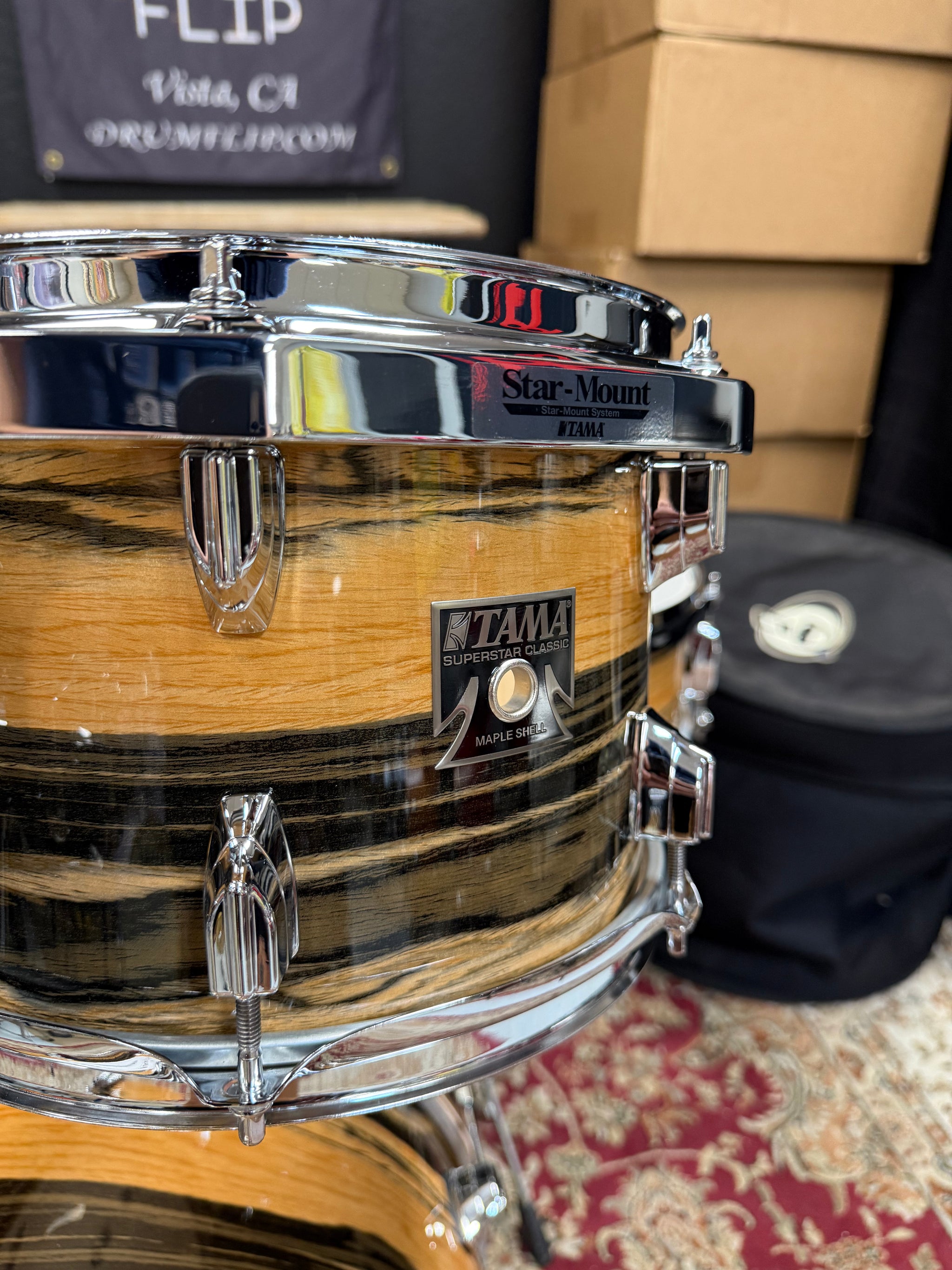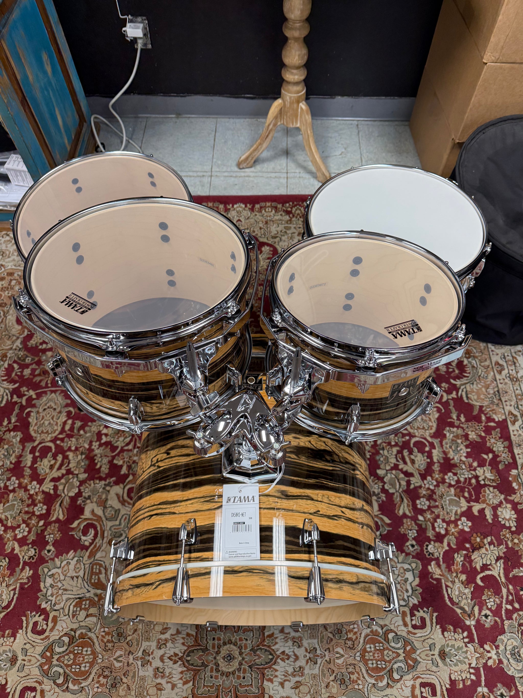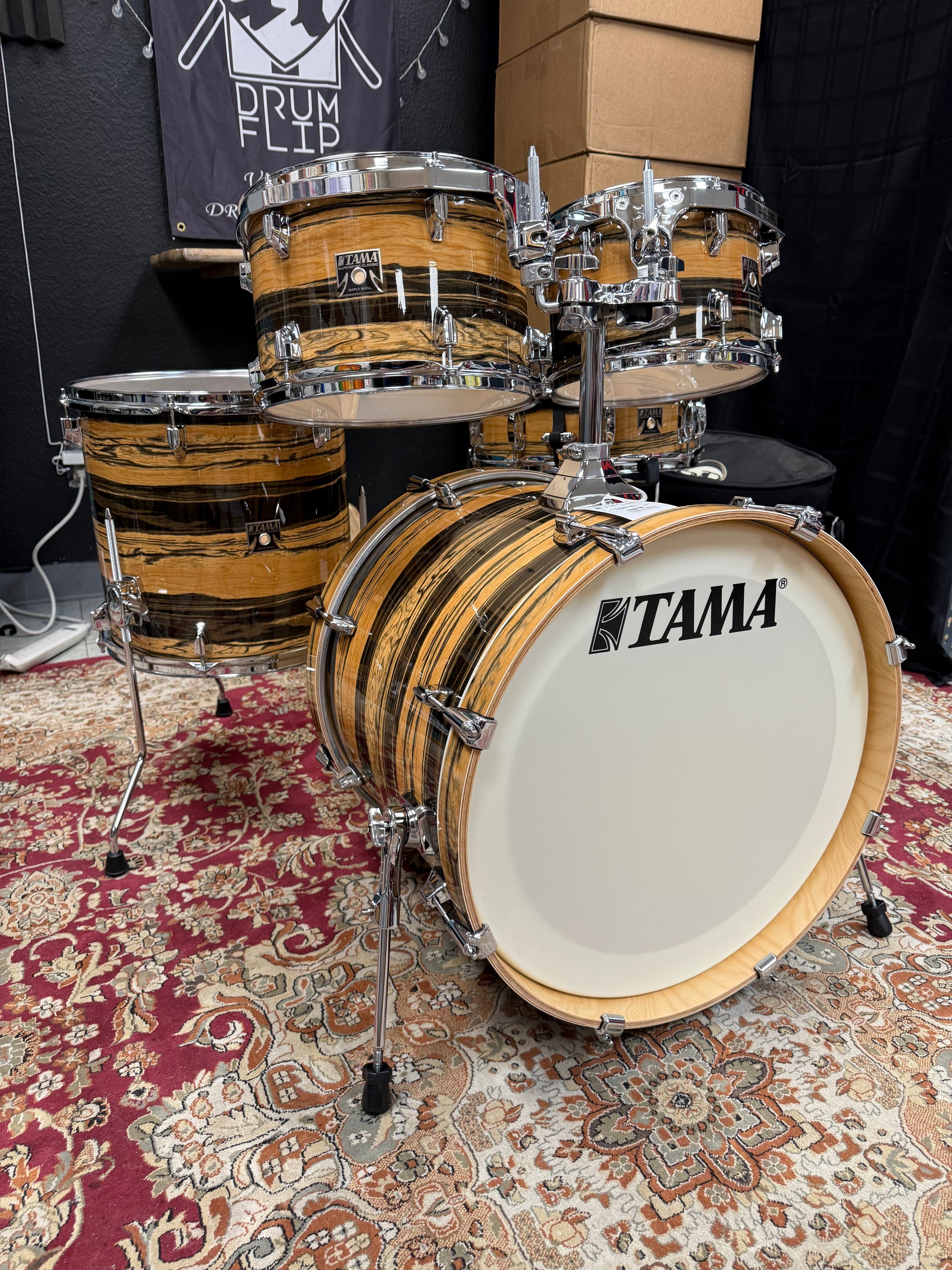 Tama Superstar Classic Maple Natural Ebony Tiger Drum Set! Stunning kit. Brand new.