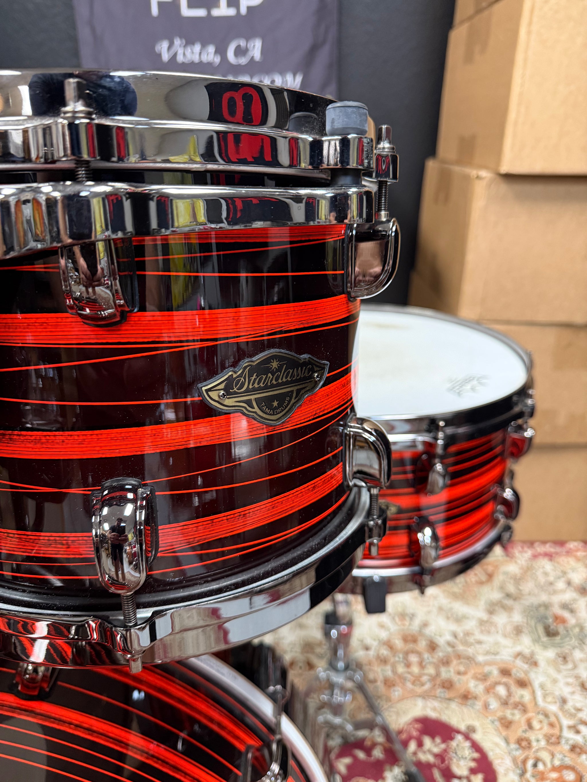 $1695 Tama Starclassic Neon Orange Oyster 5pc drum set. Used very nice condition with a few blemishes. One spot pictured has some snare rub on the 12” tom.