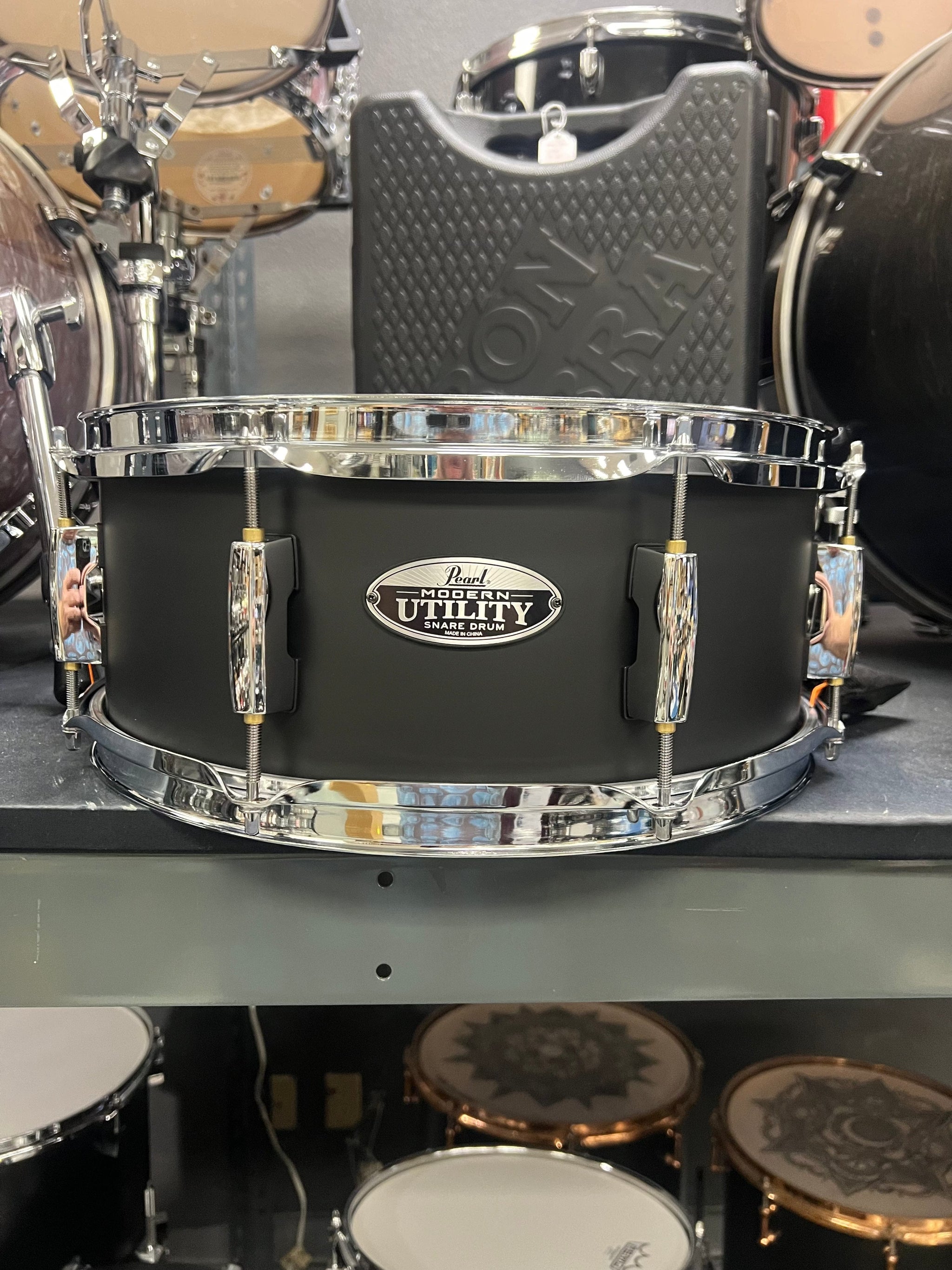 Pearl Modern utility 14x5.5” satin black maple snare drum. Modern Utility 12”x7” Snare Drum