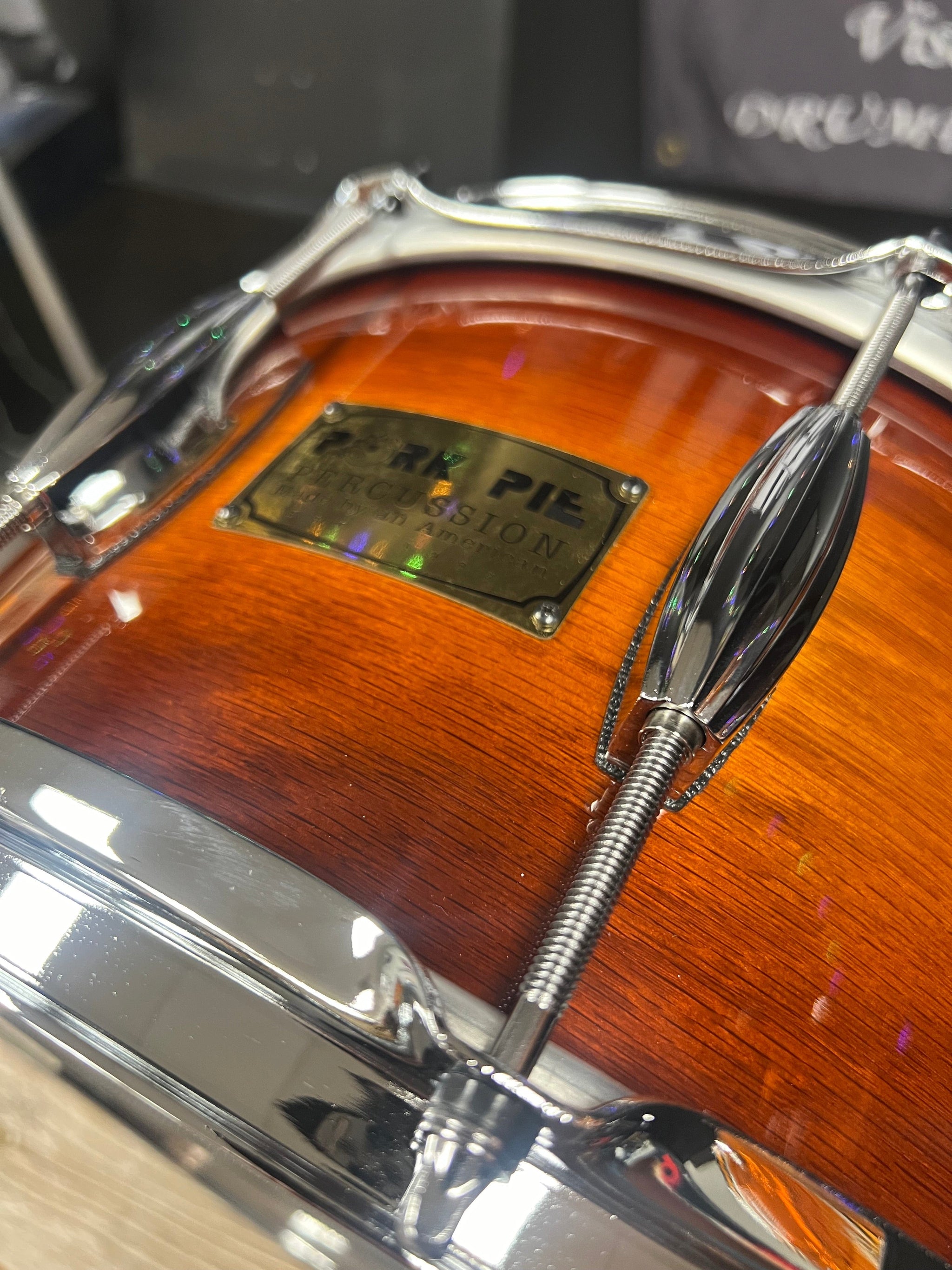 Pork Pie 14x7” Tobacco burst red oak snare drum! Handmade in the USA.
