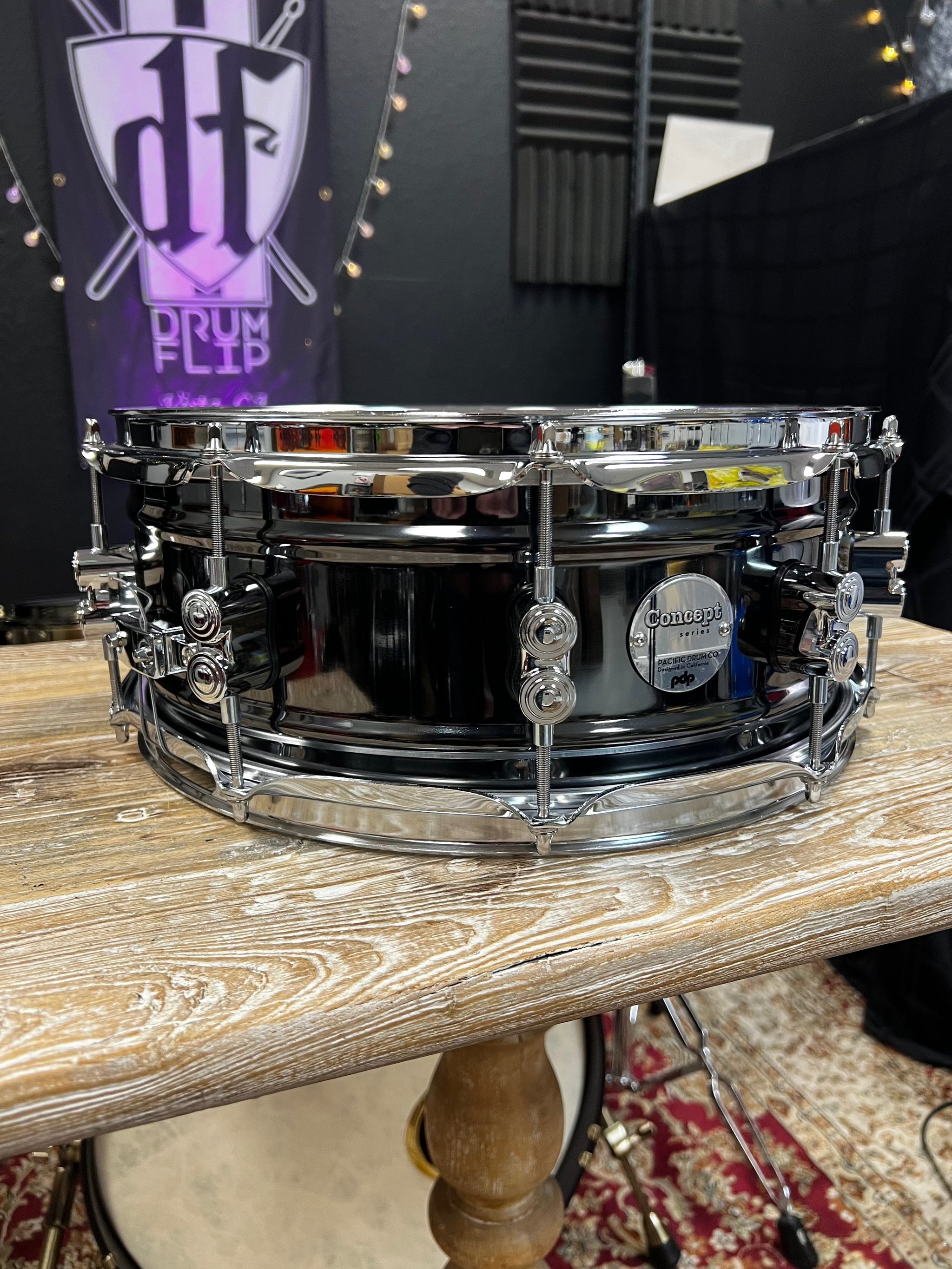 PDP Black nickel over steel 14x5.5” Concept series snare drum. Brand new. Concept Series Black Nickel over Steel Snare with Chrome Hardware dual-beaded, 1mm rolled steel shells plated in a mirror-like black nickel finish. Warm, articulate and lots of range.