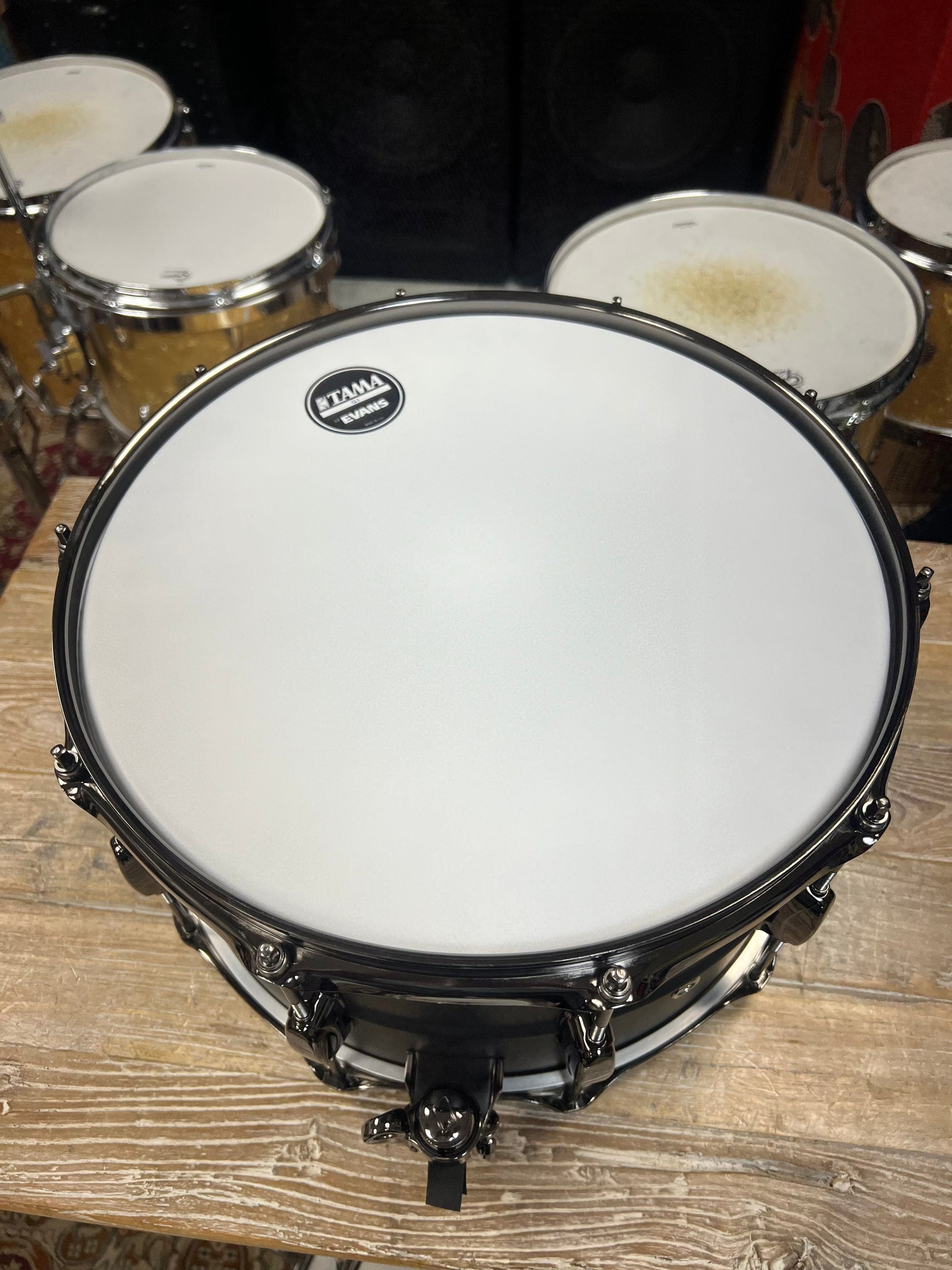 Tama SLP 14x8” Big black steel snare drum. Brand new. One of the best values in drums! Original Evans bottom head had a small pin hole, it was replaced with a new Aquarian head.