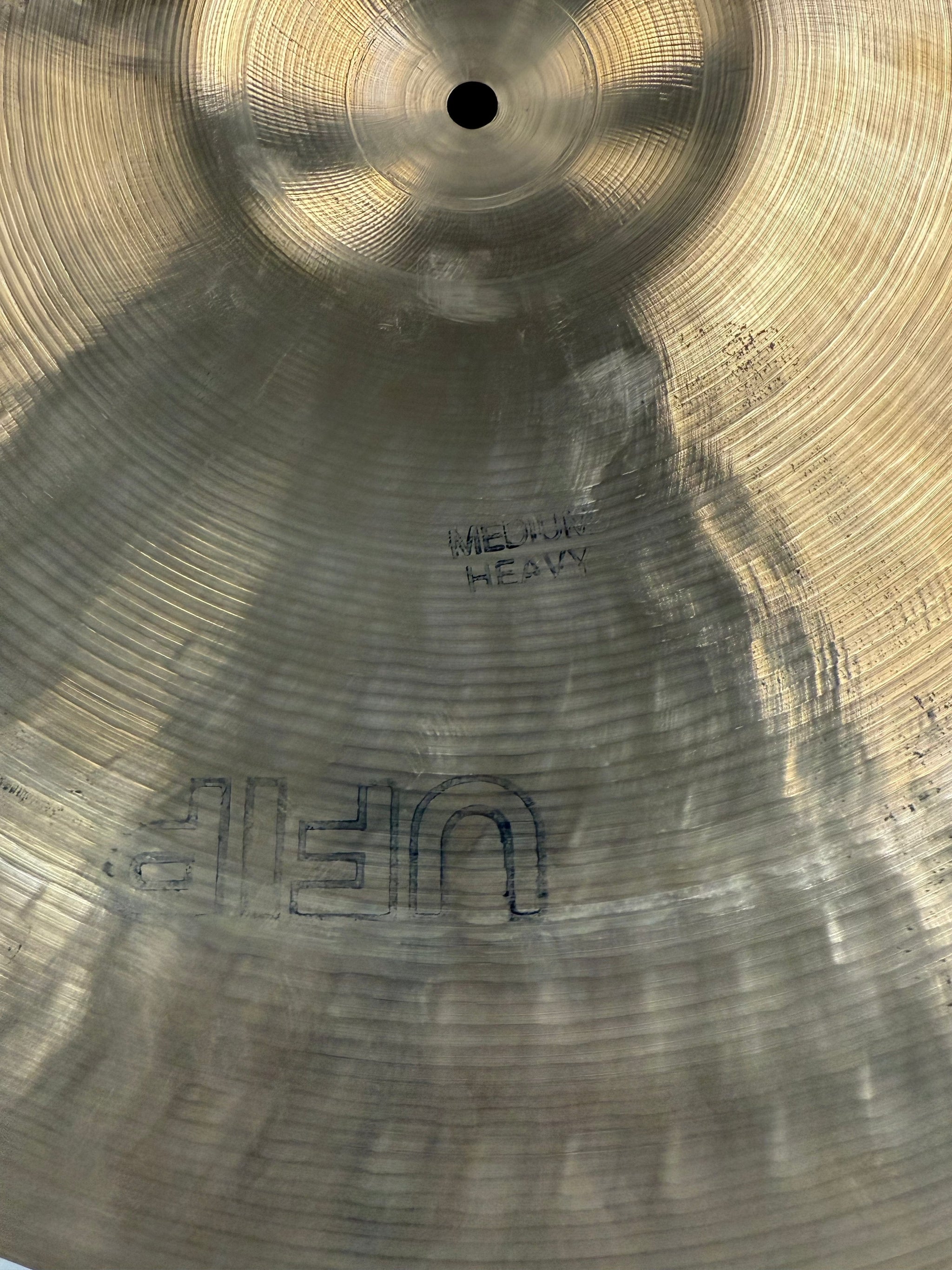 Ufip Medium Heavy bounce ride 20”. Vintage cymbal used very nice condition. Nice clear cutting bell, mid to dark tone, nice crisp stick and a warm wash. www.drumflip.com #ufip