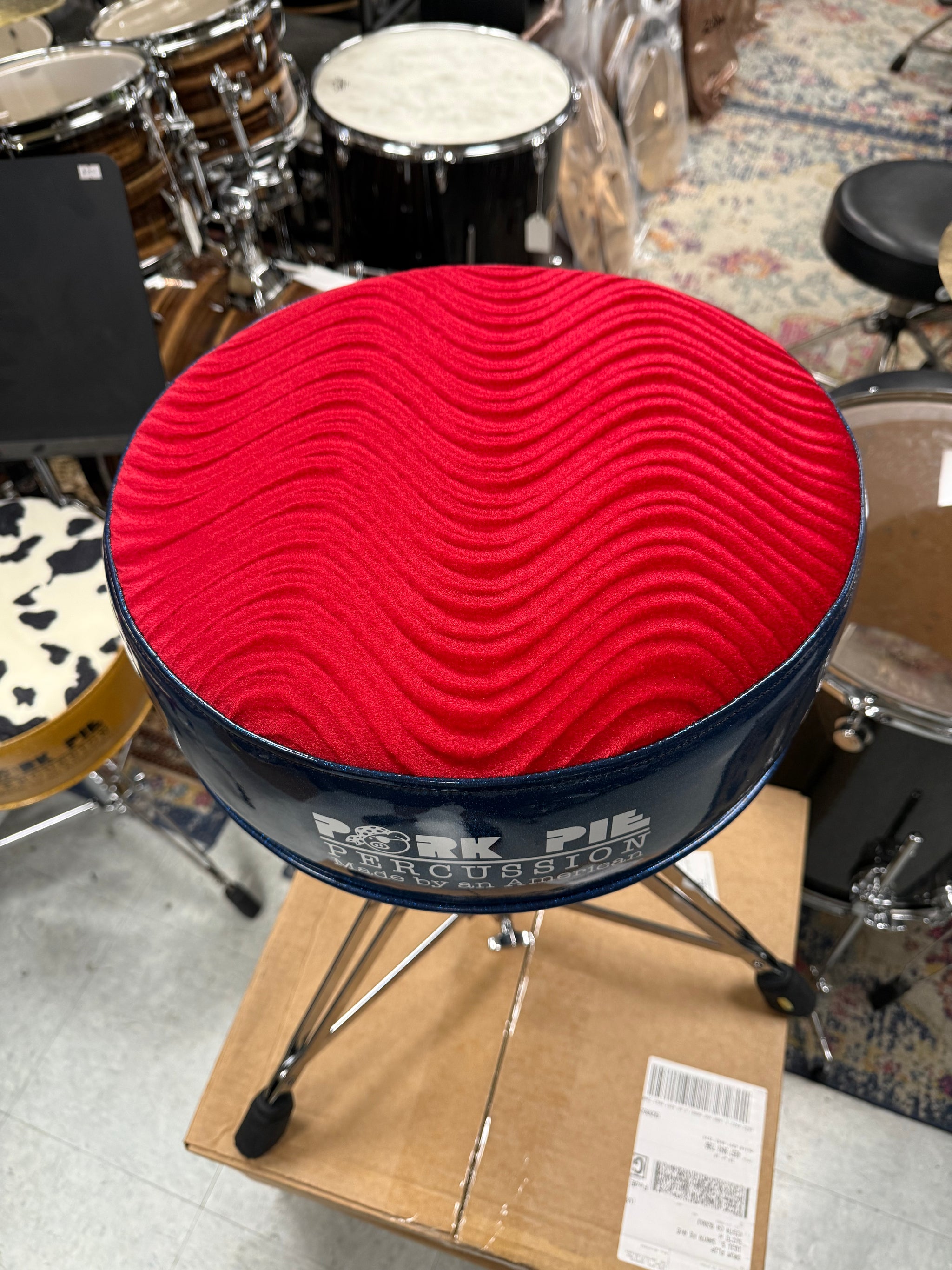 Pork Pie Drum Throne Blue Sparkle Red Top
