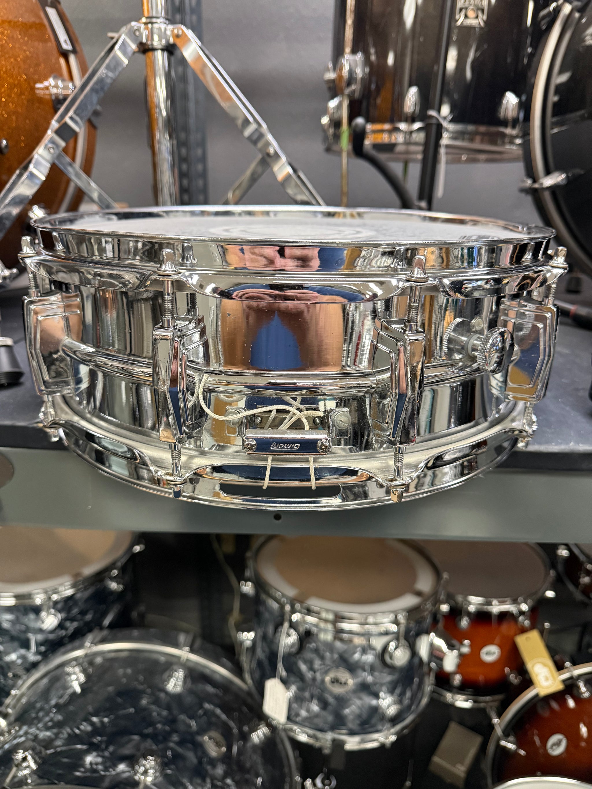 Ludwig 1970’s era 14x5” Supraphonic. Very nice used condition. Upgraded FAT CAT snare wires.