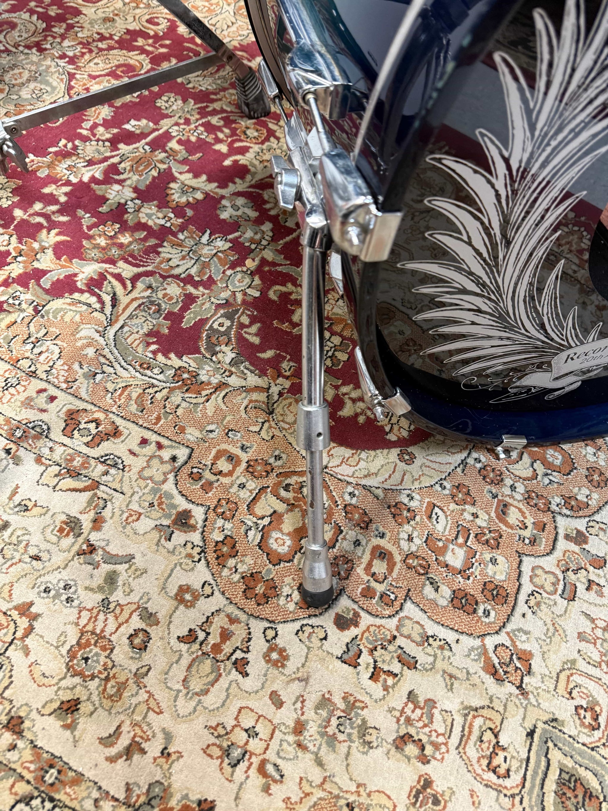 Sizes. 22x16,16x14,10x9. Used very nice condition with a few blemishes. One bass drum leg is slightly bent and still works.it may need to be replaced ant some point annd we have marked money off the kit for that.