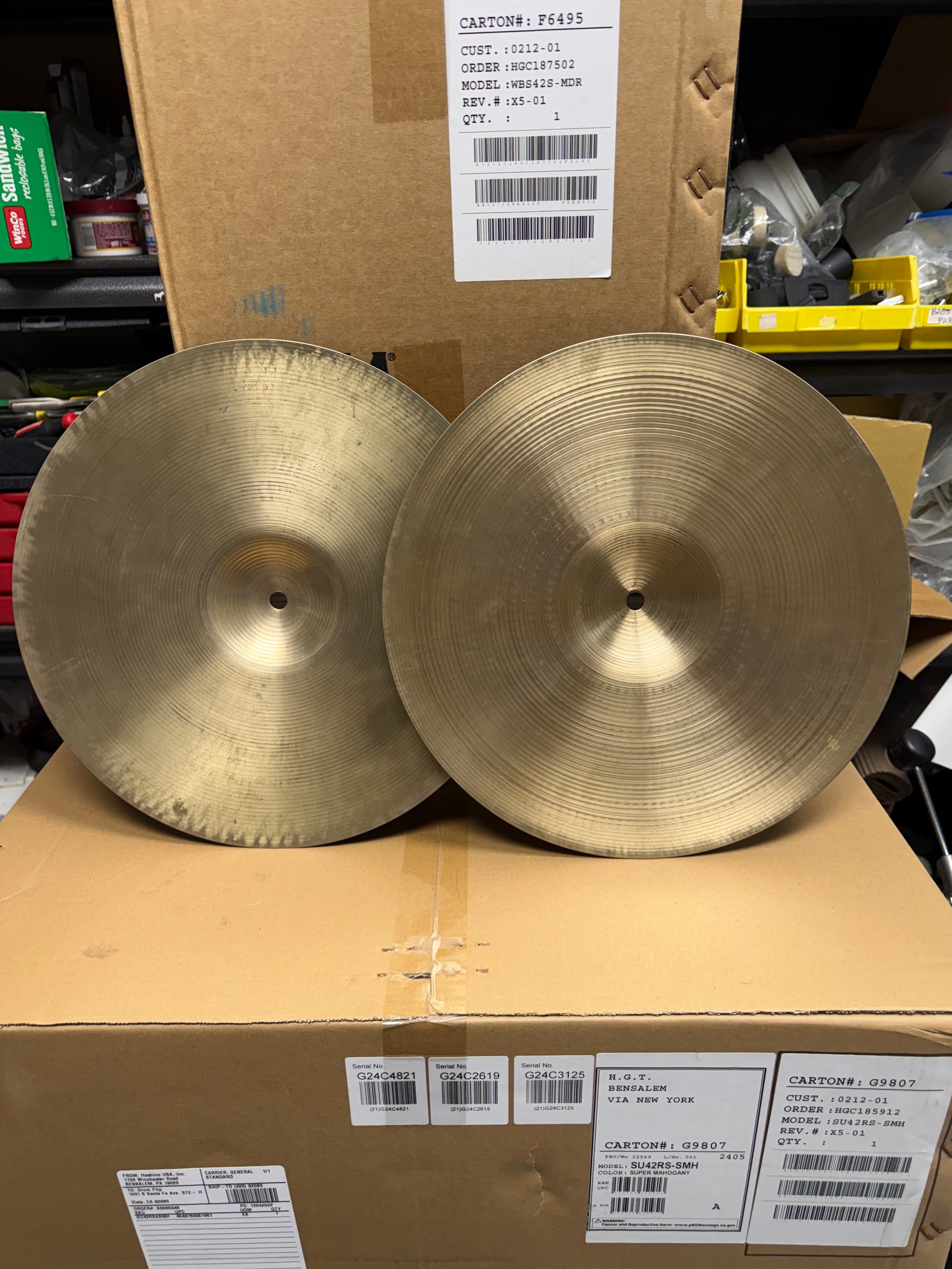 Cast bronze hi-hat cymbal pair